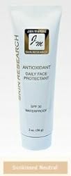 n Marini Antioxidant Daily Face Protectant - Tinted SPF 30 - Sunkissed Neutral is waterproof formula combines conventional sunscreen agents along with two newly developed non-chemical sun-blocking substances to provide enhanced sun protection and exceptional skin recovery benefits. The result is a formulation that ensures continuous coverage for daily or extended exposure conditions with a broad spectrum SPF 30 rating. It's even waterproof for times when perspiration or water sports may be a factor. Antioxidant Daily Face Protectant SPF 30 Waterproof combines a cutting edge microscopic sponge encapsulation system, state of the art sun protection, a powerful antioxidant component, and a superb hydrating complex. Plus, as with the traditional SPF 30, Jan Marini Skin research has added the remarkable benefits of PhytoMelaninTM, a plant-based technology that provides further UV and antioxidant protection. Unlike traditional sunscreen, Daily Face Protectant never feels heavy or greasy, but instead gives a lasting oil-free matte finish that leaves facial skin with a soft silky conditioned effect as it aids in increasing and sustaining moisture content.